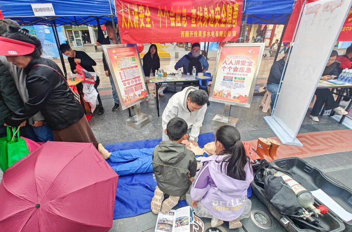 6月16日,西藏開投果多水電公司積極響應(yīng)昌都市安全生產(chǎn)委員會(huì)辦公室及昌都市應(yīng)急管理局邀請(qǐng),參加昌都市“人人講安全、個(gè)個(gè)會(huì)應(yīng)急——查找身邊安全隱患”為主題的安全宣傳咨詢?nèi)栈顒?dòng)?;顒?dòng)現(xiàn)場(chǎng),果多水電公司向市民發(fā)放了安全用電手冊(cè),積極普及安全用電知識(shí),現(xiàn)場(chǎng)講解了各電壓等級(jí)驗(yàn)電棒、三相短路接地線、高壓拉閘桿及正壓式空氣呼吸器、五點(diǎn)式安全帶等多種安全設(shè)備相關(guān)知識(shí),并開展了心肺復(fù)蘇模擬器實(shí)操演示,吸引了眾多市民駐足觀摩,部分市民還積極參與了心肺復(fù)蘇模擬實(shí)操。