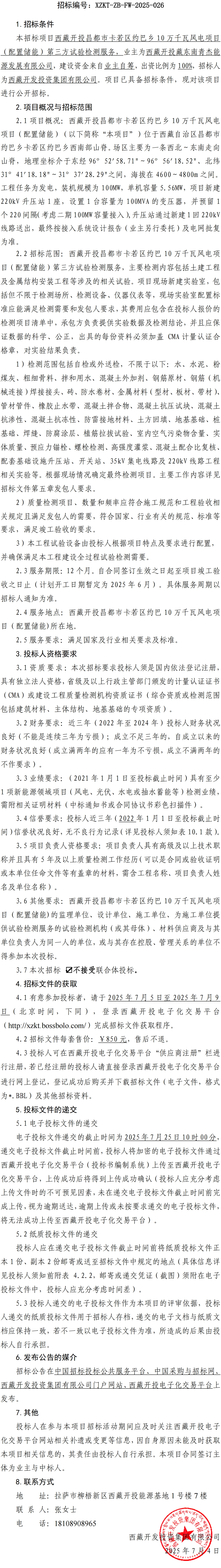 西藏開(kāi)投昌都市卡若區(qū)約巴鄉(xiāng) 10 萬(wàn)千瓦風(fēng)電項(xiàng)目(配置儲(chǔ)能) 第三方試驗(yàn)檢測(cè)服務(wù)招標(biāo)公告